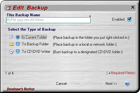 Developer's Backup is closely integrated with Windows Explorer. Here,